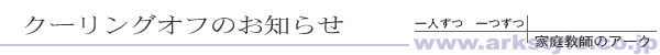 指導員の派遣期間は、申込み時の特別の取り決め(短期間など)が無い限りはお客様が指導の中断・終了をお申し出になられるまでとなります。但し、派遣期間は家庭教師のアーク(有限会社アークスタイル)(以下アーク)より強制されるものではなく、指導の中断や終了を御希望される場合はアークまでお申し出下さい。指導員の派遣を中断・終了される場合、終了予定日の14日以上前に弊社フリーダイヤル0120-056-955(平日 10:00−20:00)へお電話下さい。違約金等の金銭が発生する事はありません。 |